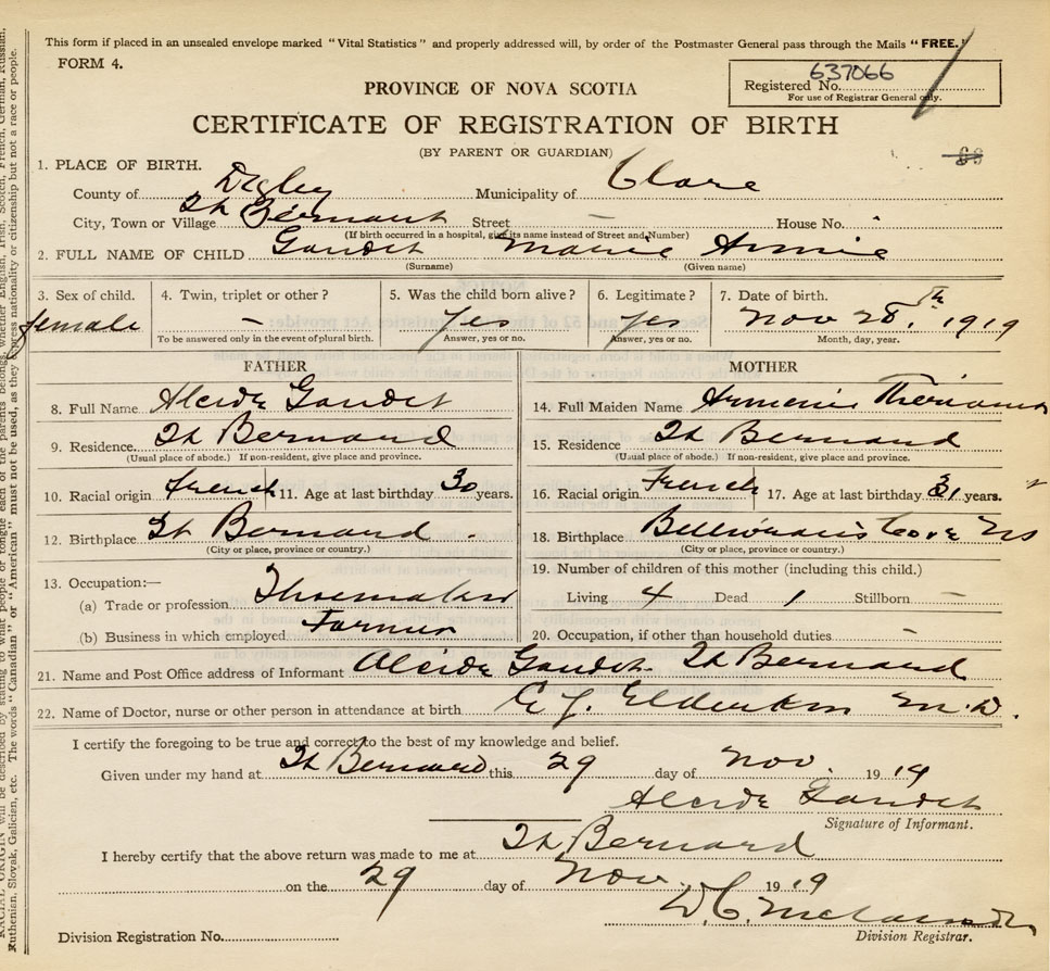 21. Name and Post Office address of Informant Alcide Gaudet St. Bernard, Digby Co., NS