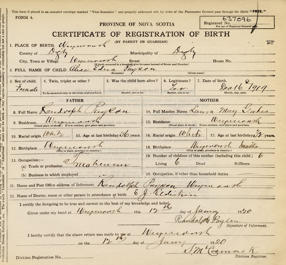 Nova Scotia Archives — https://archives.novascotia.ca/vital-statistics/birth/?ID=401149