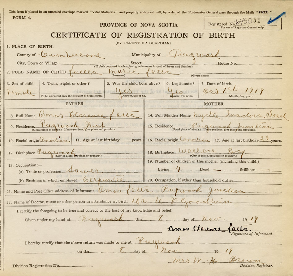 Nova Scotia Archives — https://archives.novascotia.ca/vital-statistics/birth/?ID=401229