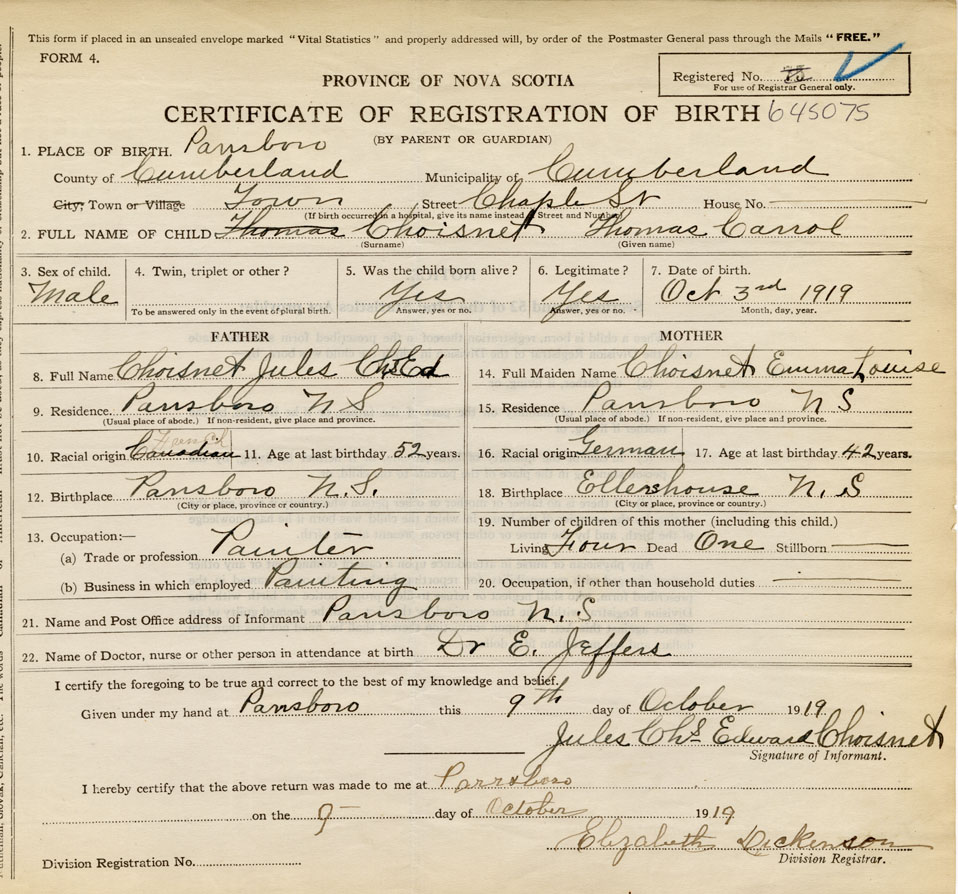 Nova Scotia Archives — https://archives.novascotia.ca/vital-statistics/birth/?ID=401253