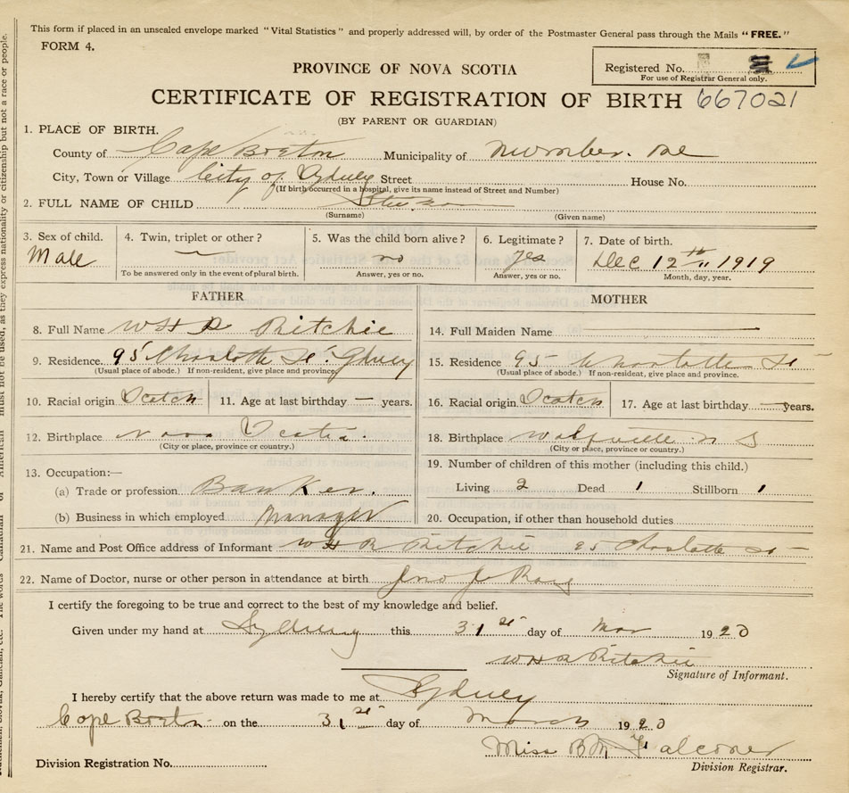 Born at Sydney in the County of Cape Breton