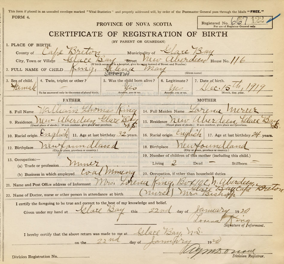 Date of Birth December 15, 1919 Place of Birth Glace BayCounty of Cape Breton