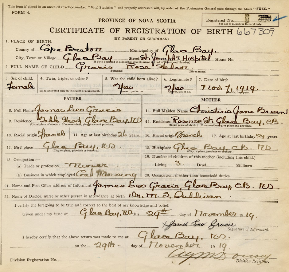 Date of Birth November 7, 1919 Place of Birth Glace BayCounty of Cape Breton