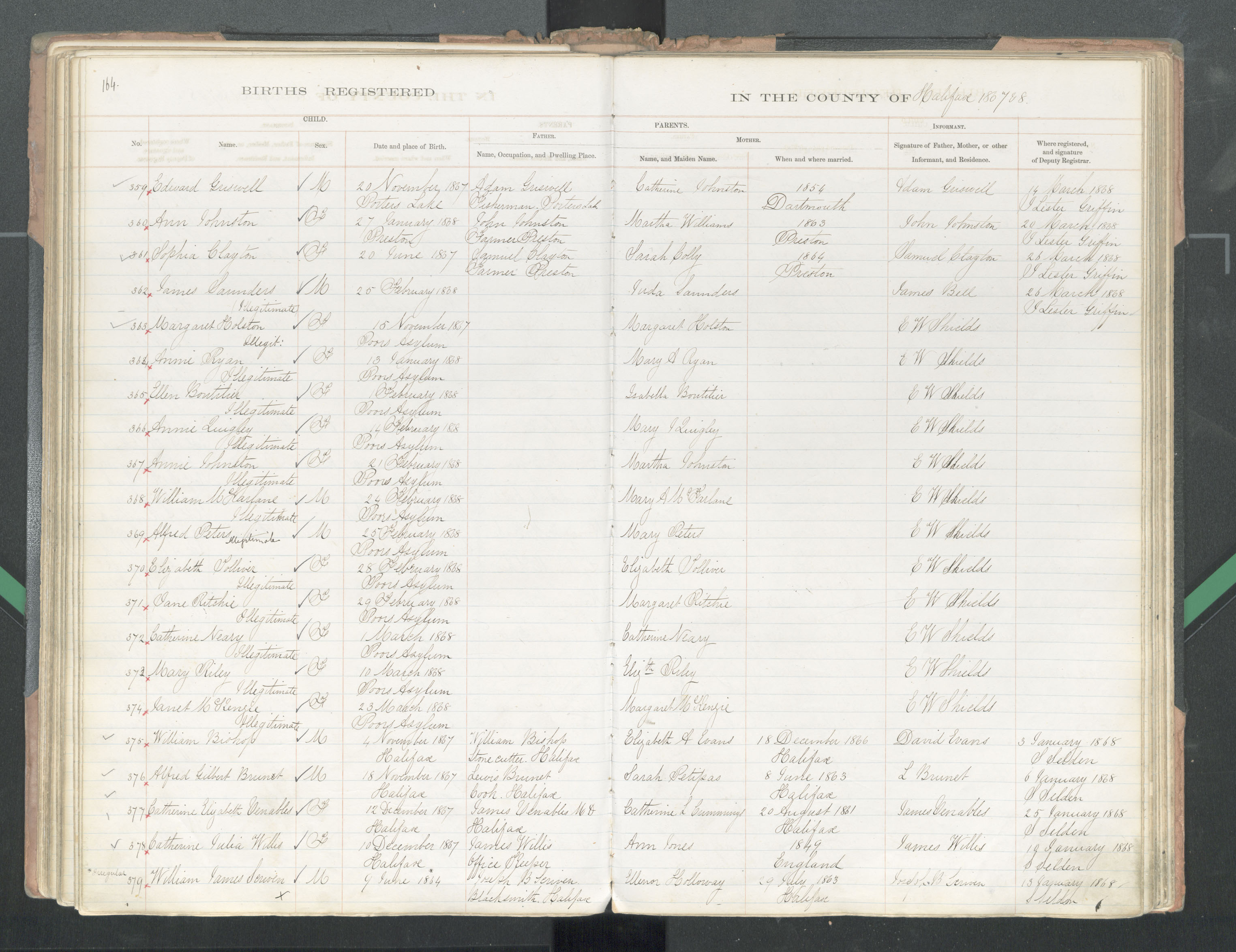 Birth Registration: Year: 1867 book: 1809 page: 164 number: 359