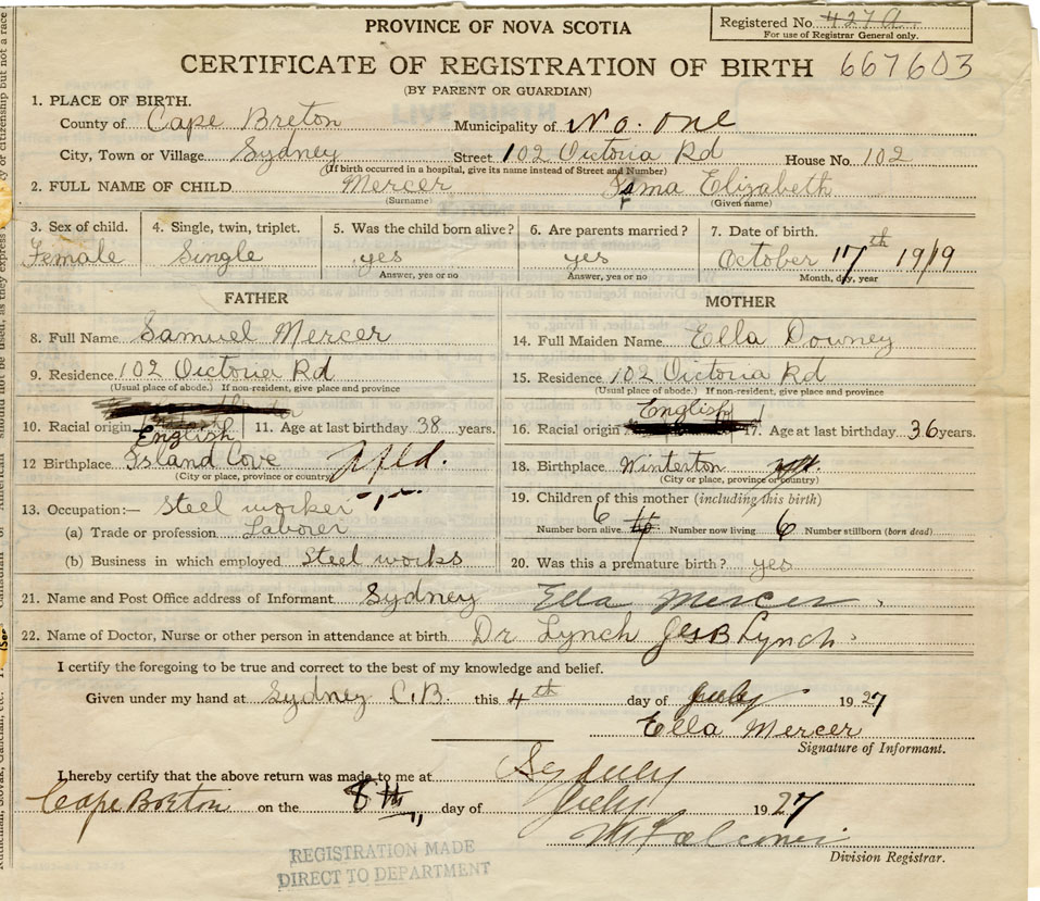 Born at Sydney in the County of Cape Breton