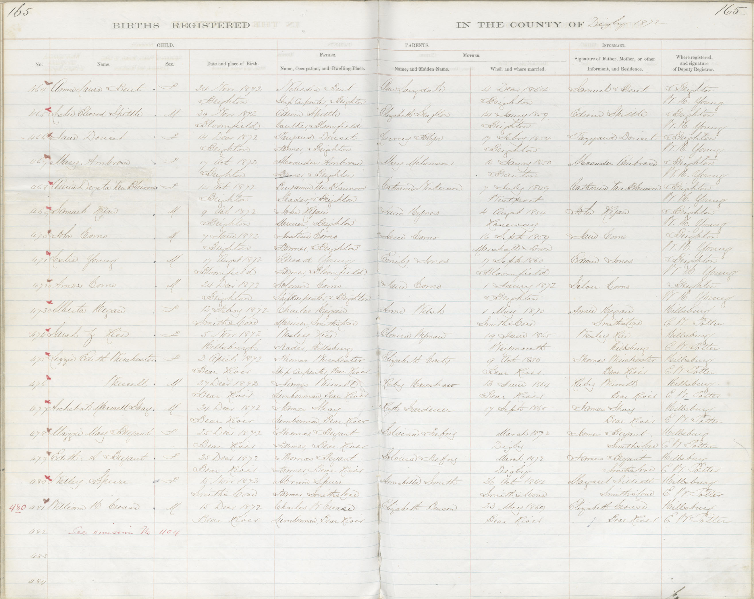 Female Birth Registration: Year: 1872 book: 1807 page: 10165 number: 468