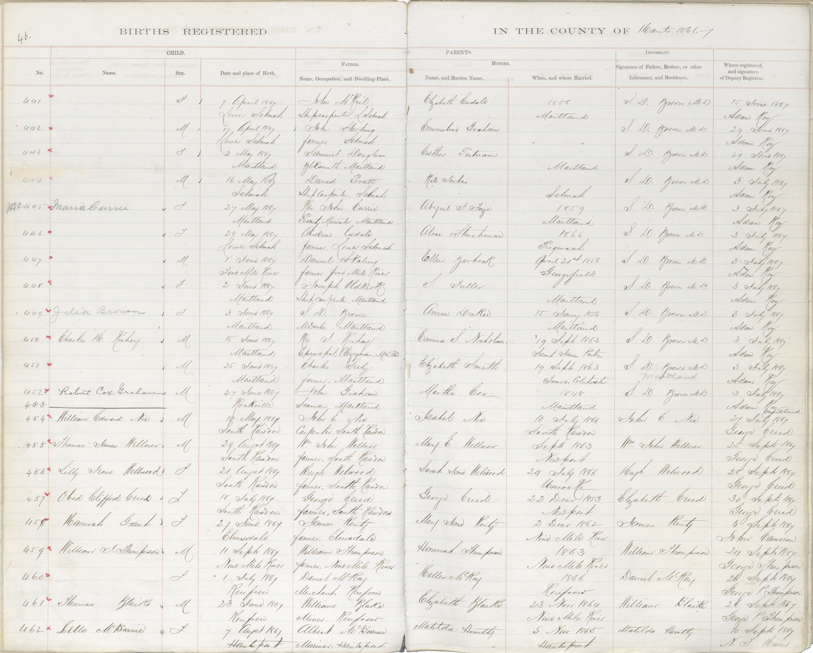 Female Birth Registration: Year: 1867 book: 1812 page: 10046 number: 460