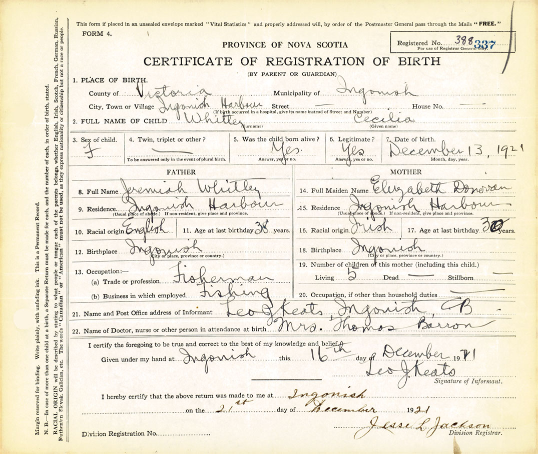 Female Birth Registration: Year: 1921 number: 38800337