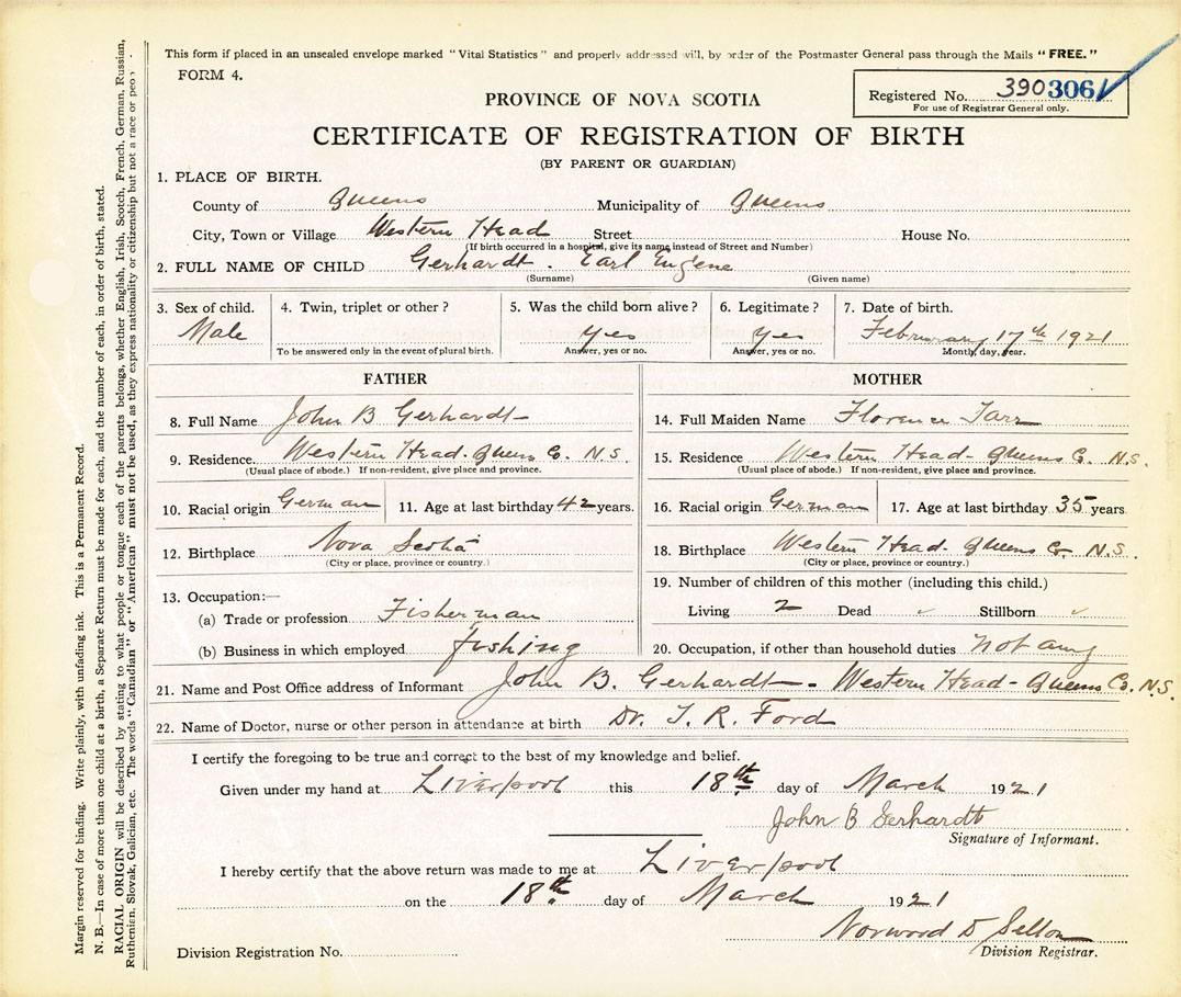 21. Name and Post Office address of Informant John B. Gerhardt Western Head - Queens N.S.