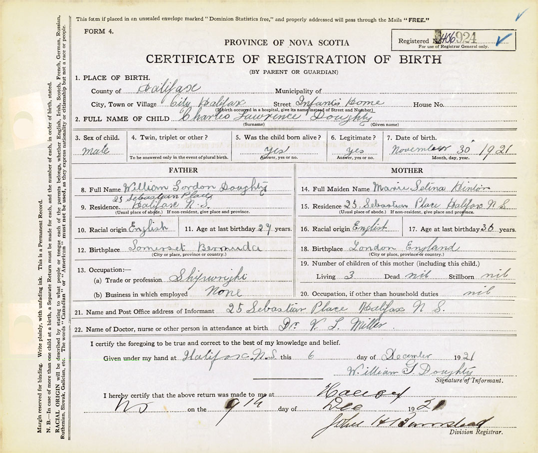 21. Name and Post Office address of Informant William G. Doughty 25 Sebastian Place, Halifax
