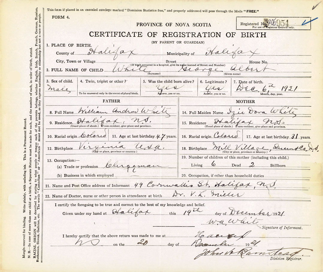 21. Name and Post Office address of Informant W.A. White 49 Cornwallis St., Halifax