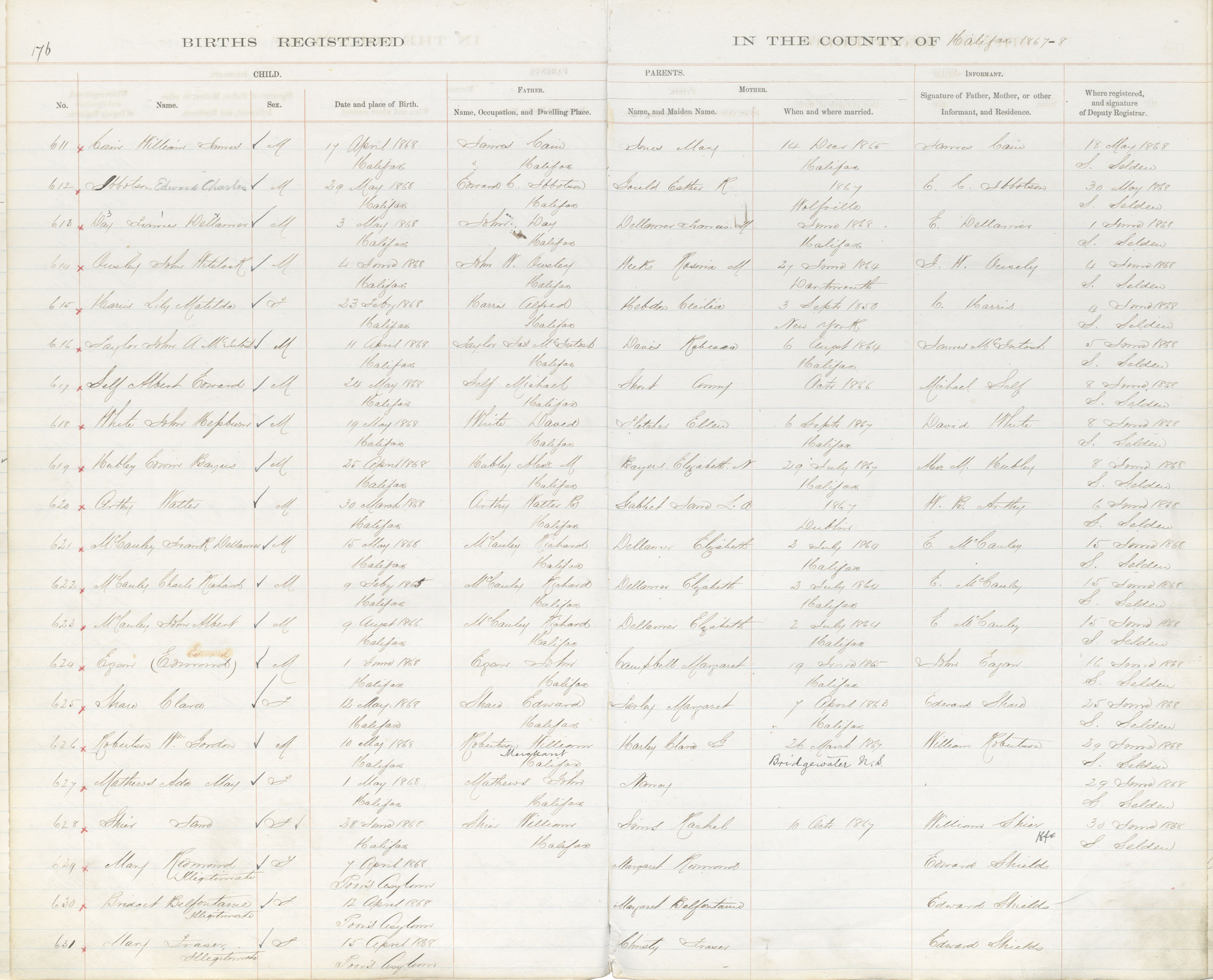 Birth Registration: Year: 1868 book: 1809 page: 176 number: 611
