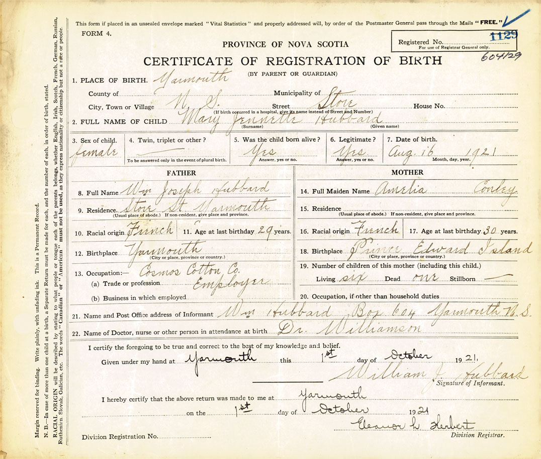 Nova Scotia Archives — https://archives.novascotia.ca/vital-statistics/birth/?ID=405233