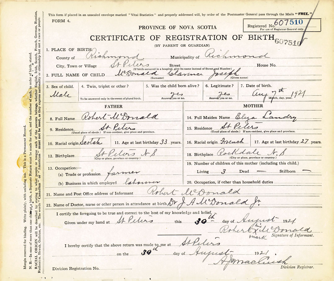 Nova Scotia Archives — https://archives.novascotia.ca/vital-statistics/birth/?ID=405989