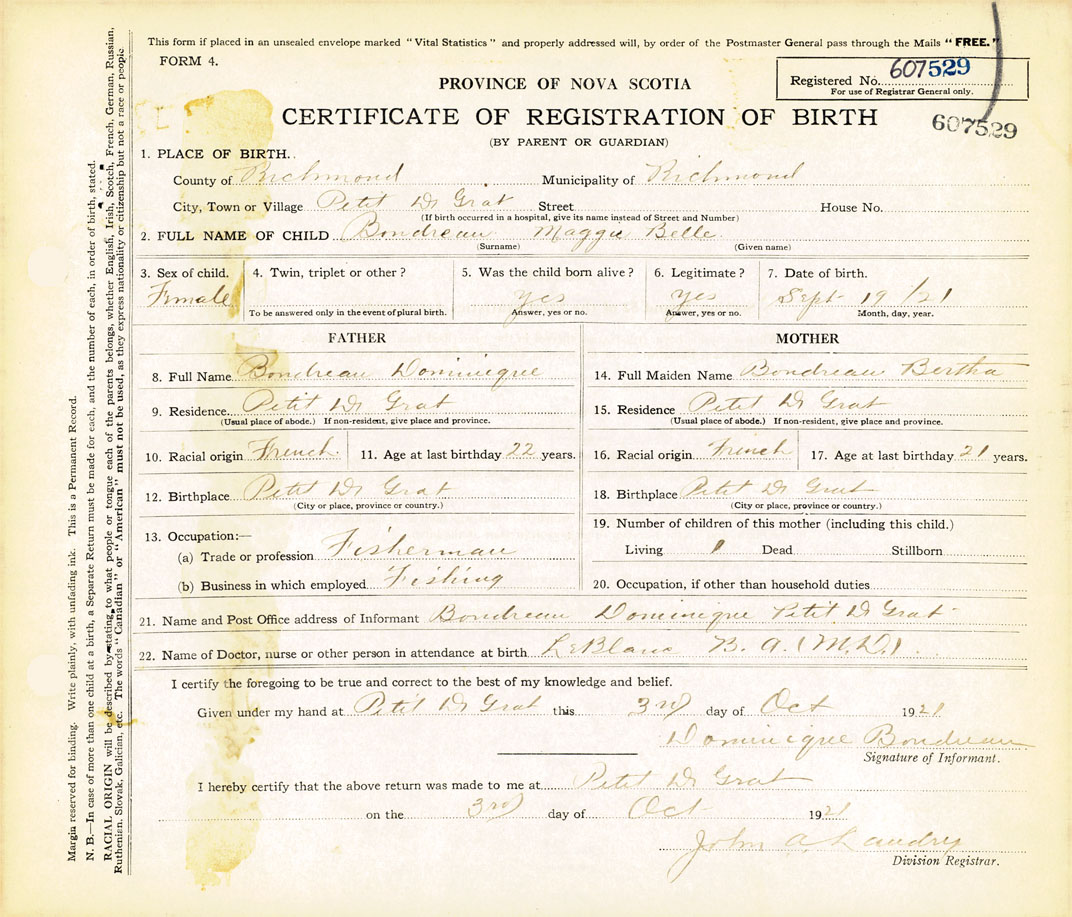 21. Name and Post Office address of Informant Dominique Boudreau Petit De Grat