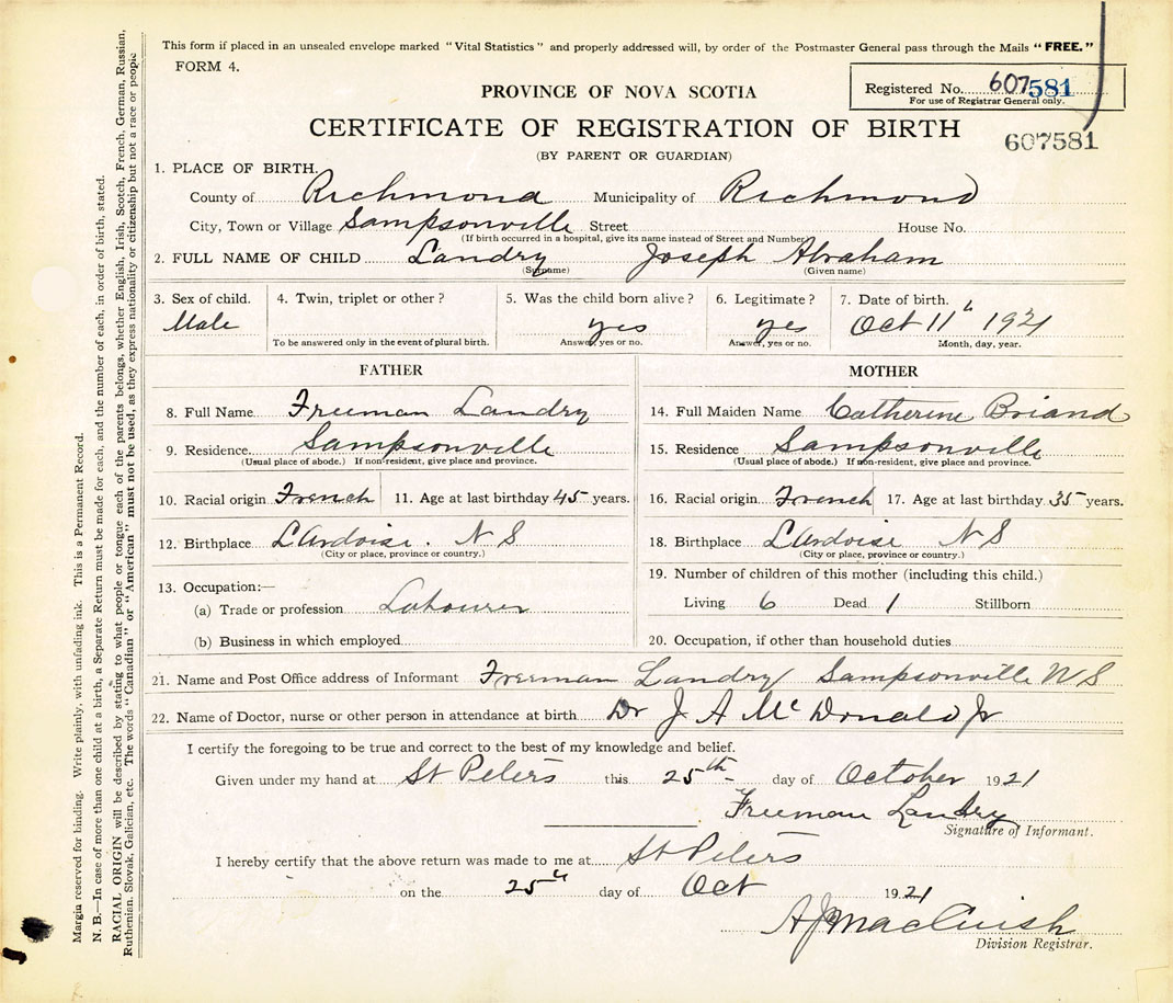 Nova Scotia Archives — https://archives.novascotia.ca/vital-statistics/birth/?ID=406060