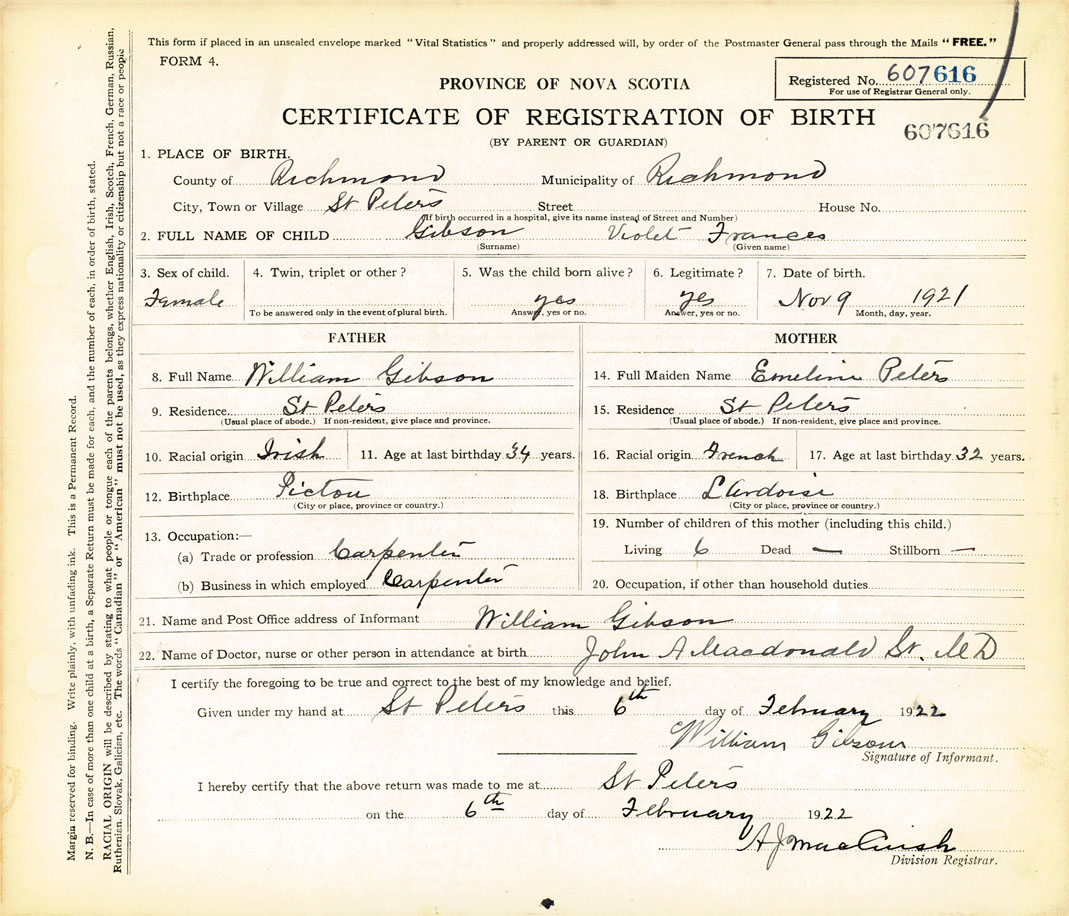 Nova Scotia Archives — https://archives.novascotia.ca/vital-statistics/birth/?ID=406095