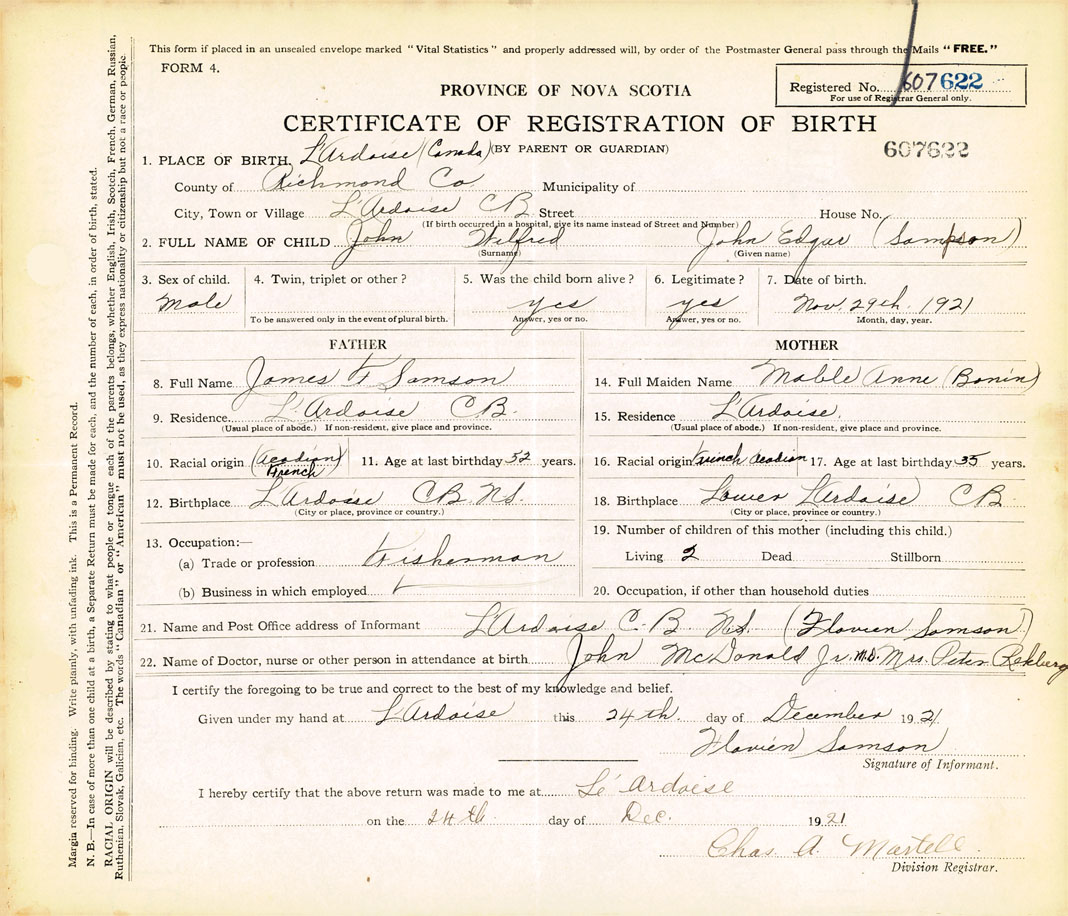 Nova Scotia Archives — https://archives.novascotia.ca/vital-statistics/birth/?ID=406101