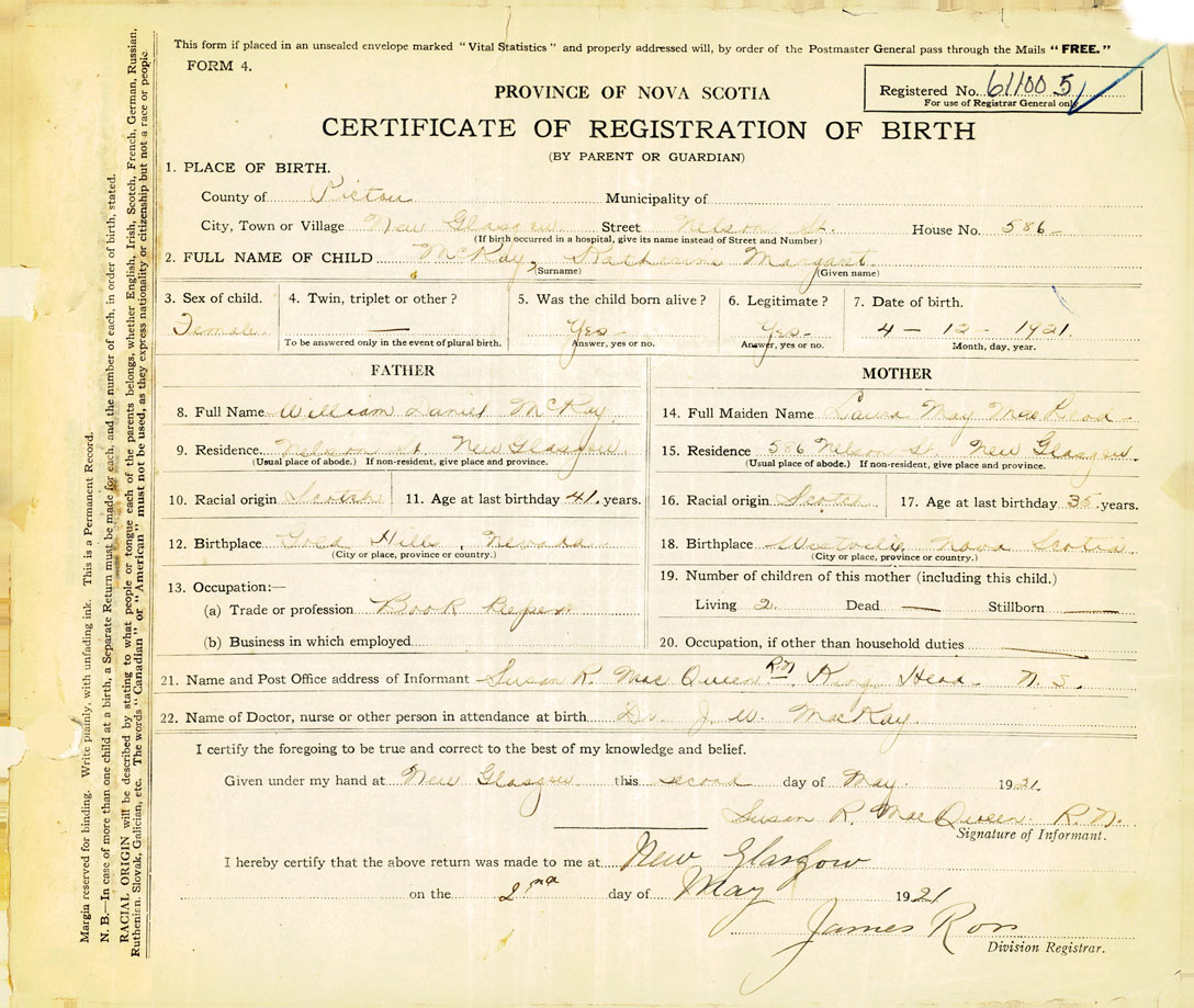 Nova Scotia Archives — https://archives.novascotia.ca/vital-statistics/birth/?ID=406147