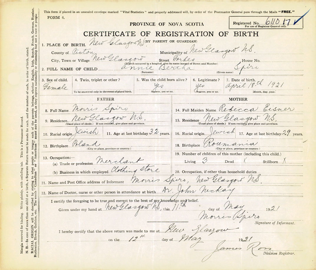 Nova Scotia Archives — https://archives.novascotia.ca/vital-statistics/birth/?ID=406159