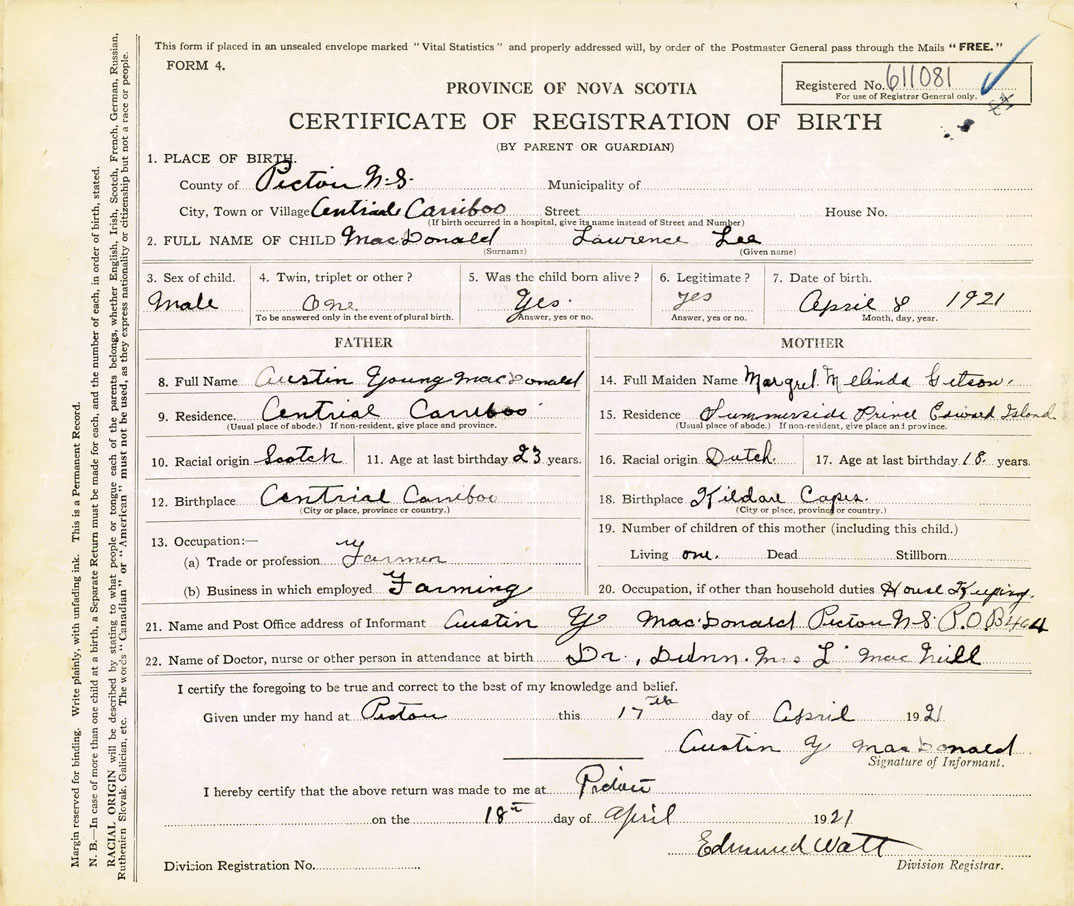 Nova Scotia Archives — https://archives.novascotia.ca/vital-statistics/birth/?ID=406220