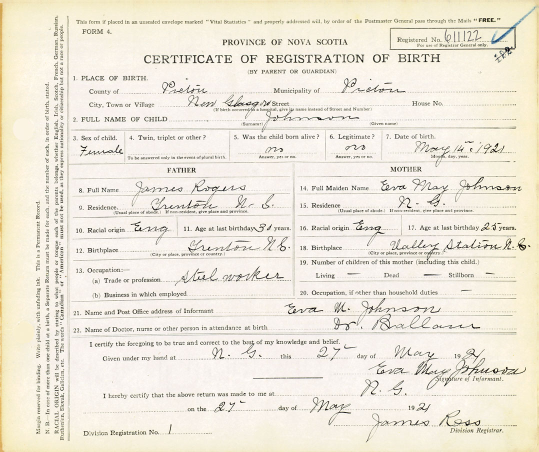 Nova Scotia Archives — https://archives.novascotia.ca/vital-statistics/birth/?ID=406261