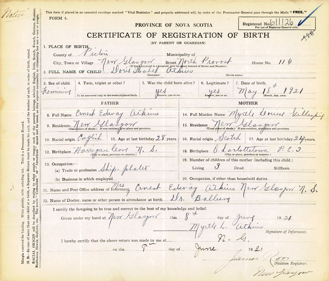Nova Scotia Archives — https://archives.novascotia.ca/vital-statistics/birth/?ID=406265
