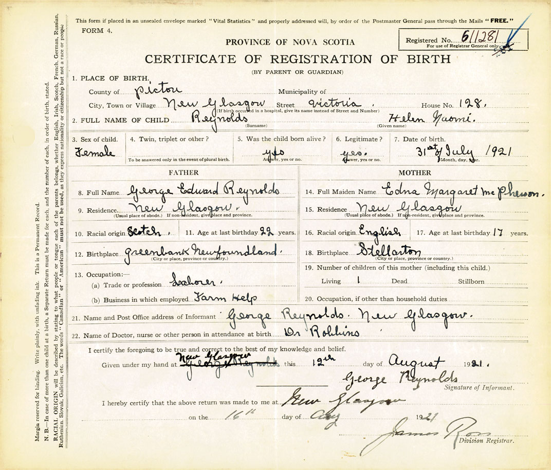 Nova Scotia Archives — https://archives.novascotia.ca/vital-statistics/birth/?ID=406419