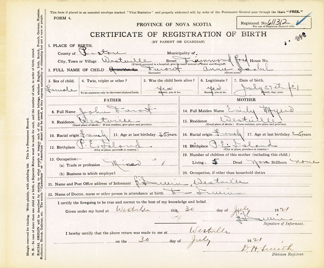 Nova Scotia Archives — https://archives.novascotia.ca/vital-statistics/birth/?ID=406450