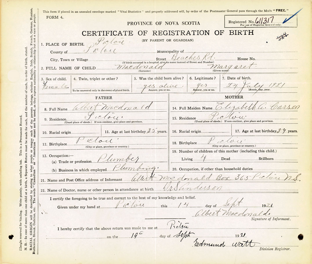 Nova Scotia Archives — https://archives.novascotia.ca/vital-statistics/birth/?ID=406455