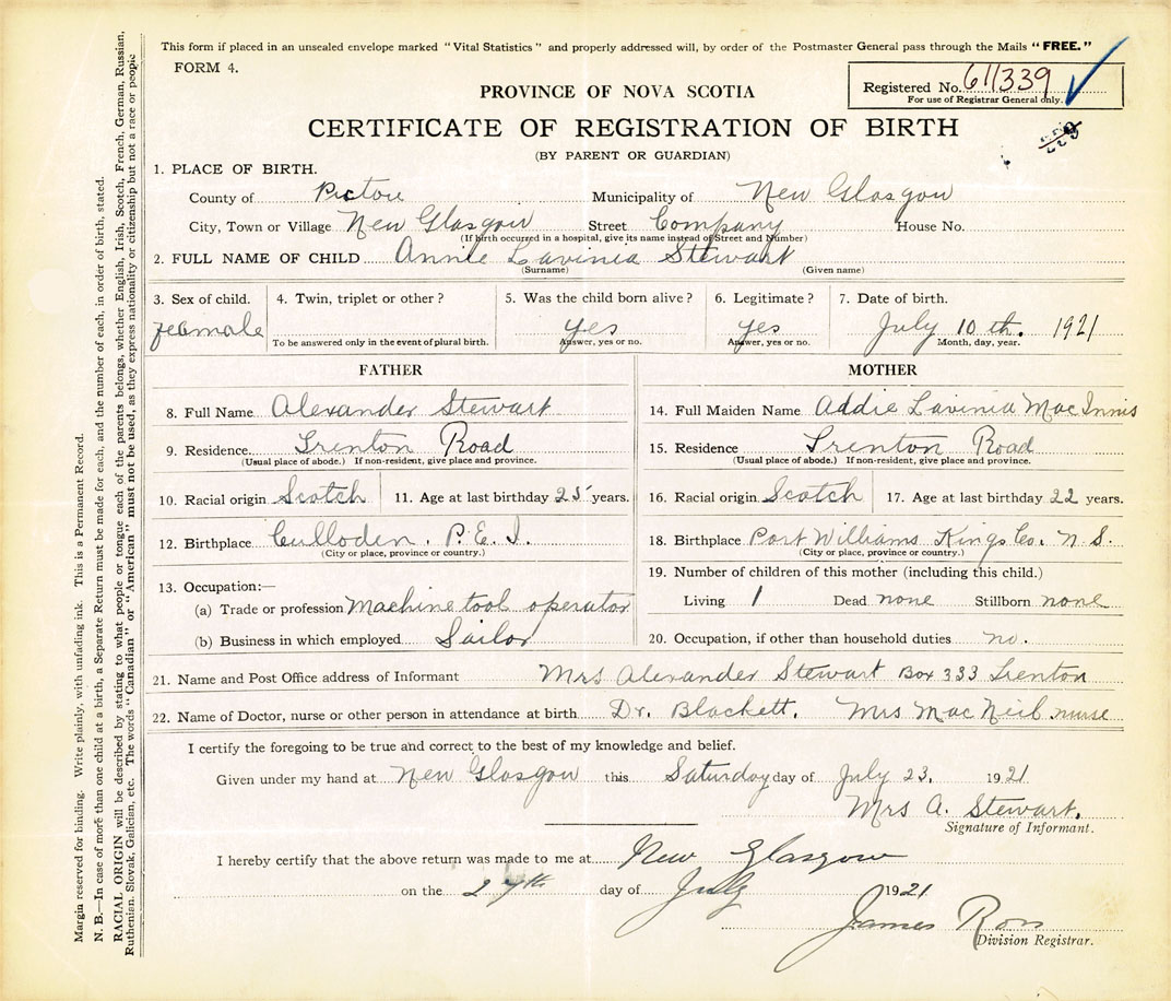 Nova Scotia Archives — https://archives.novascotia.ca/vital-statistics/birth/?ID=406477