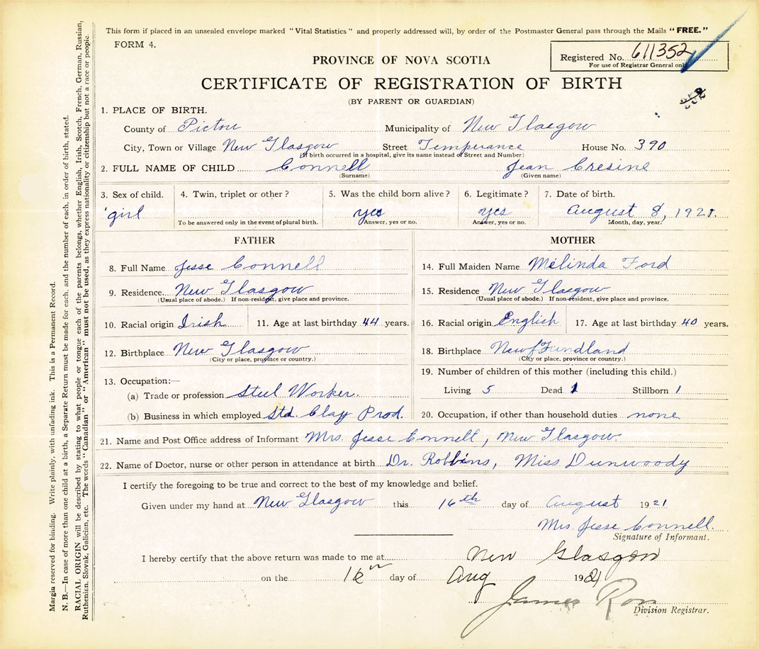 Nova Scotia Archives — https://archives.novascotia.ca/vital-statistics/birth/?ID=406490