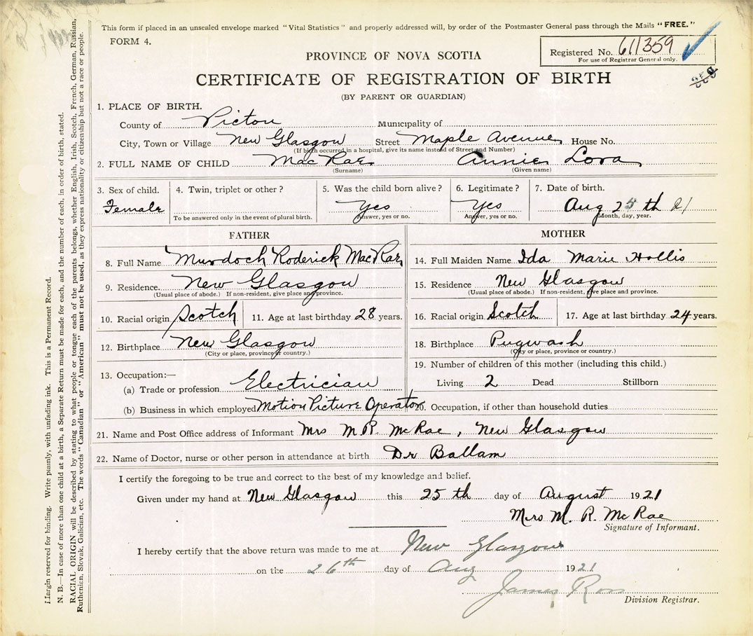 Nova Scotia Archives — https://archives.novascotia.ca/vital-statistics/birth/?ID=406497