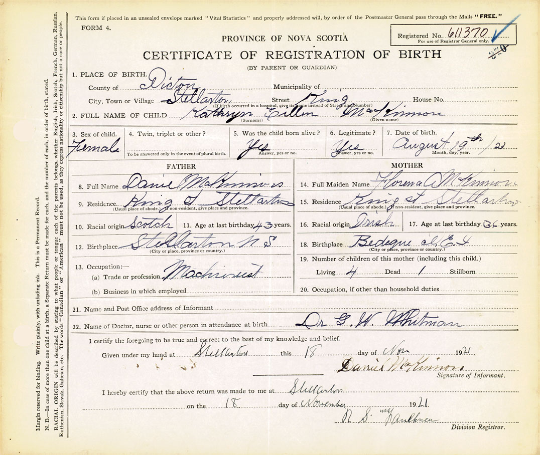 Nova Scotia Archives — https://archives.novascotia.ca/vital-statistics/birth/?ID=406508