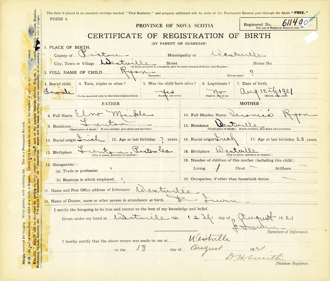 Nova Scotia Archives — https://archives.novascotia.ca/vital-statistics/birth/?ID=406538