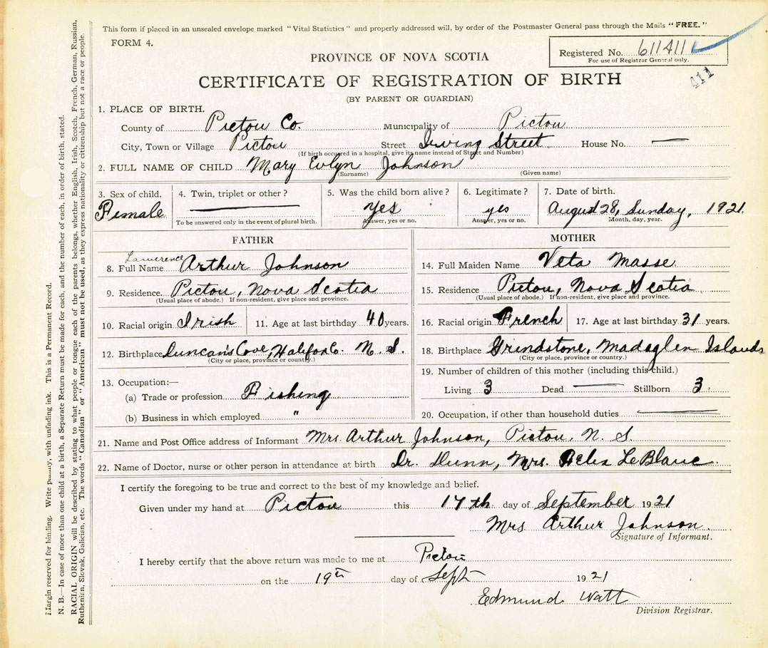 Nova Scotia Archives — https://archives.novascotia.ca/vital-statistics/birth/?ID=406548