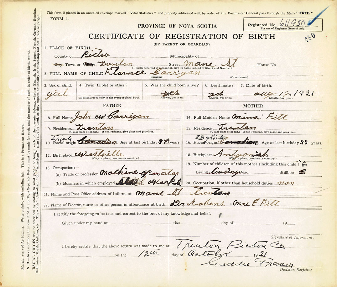 Nova Scotia Archives — https://archives.novascotia.ca/vital-statistics/birth/?ID=406567