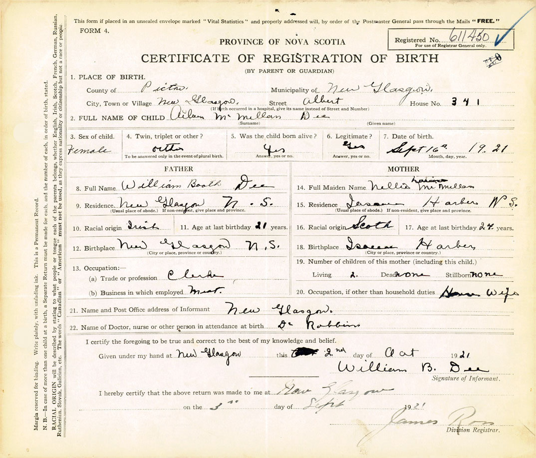Nova Scotia Archives — https://archives.novascotia.ca/vital-statistics/birth/?ID=406587