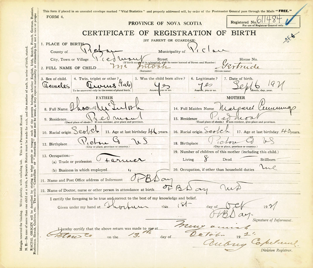 Nova Scotia Archives — https://archives.novascotia.ca/vital-statistics/birth/?ID=406621