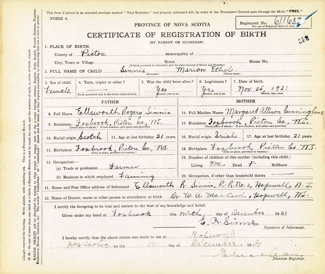 Nova Scotia Archives — https://archives.novascotia.ca/vital-statistics/birth/?ID=406768