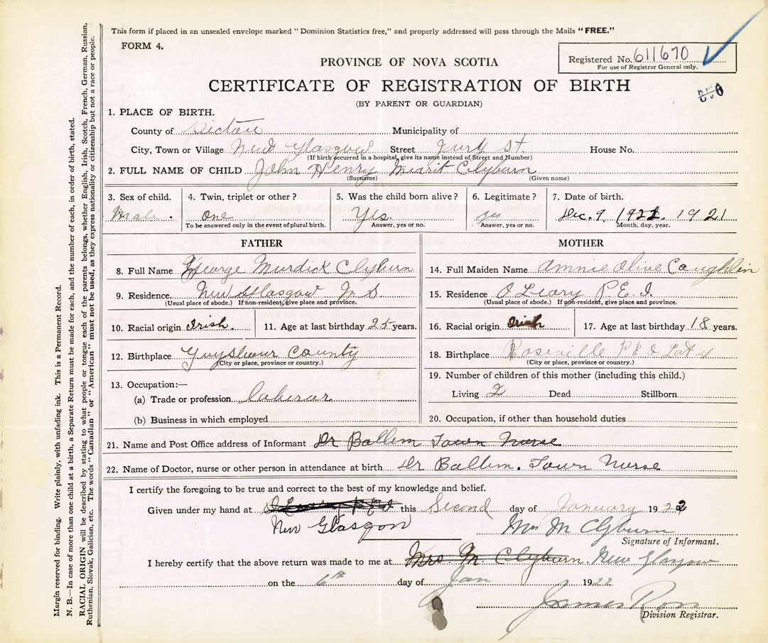 Nova Scotia Archives — https://archives.novascotia.ca/vital-statistics/birth/?ID=406806