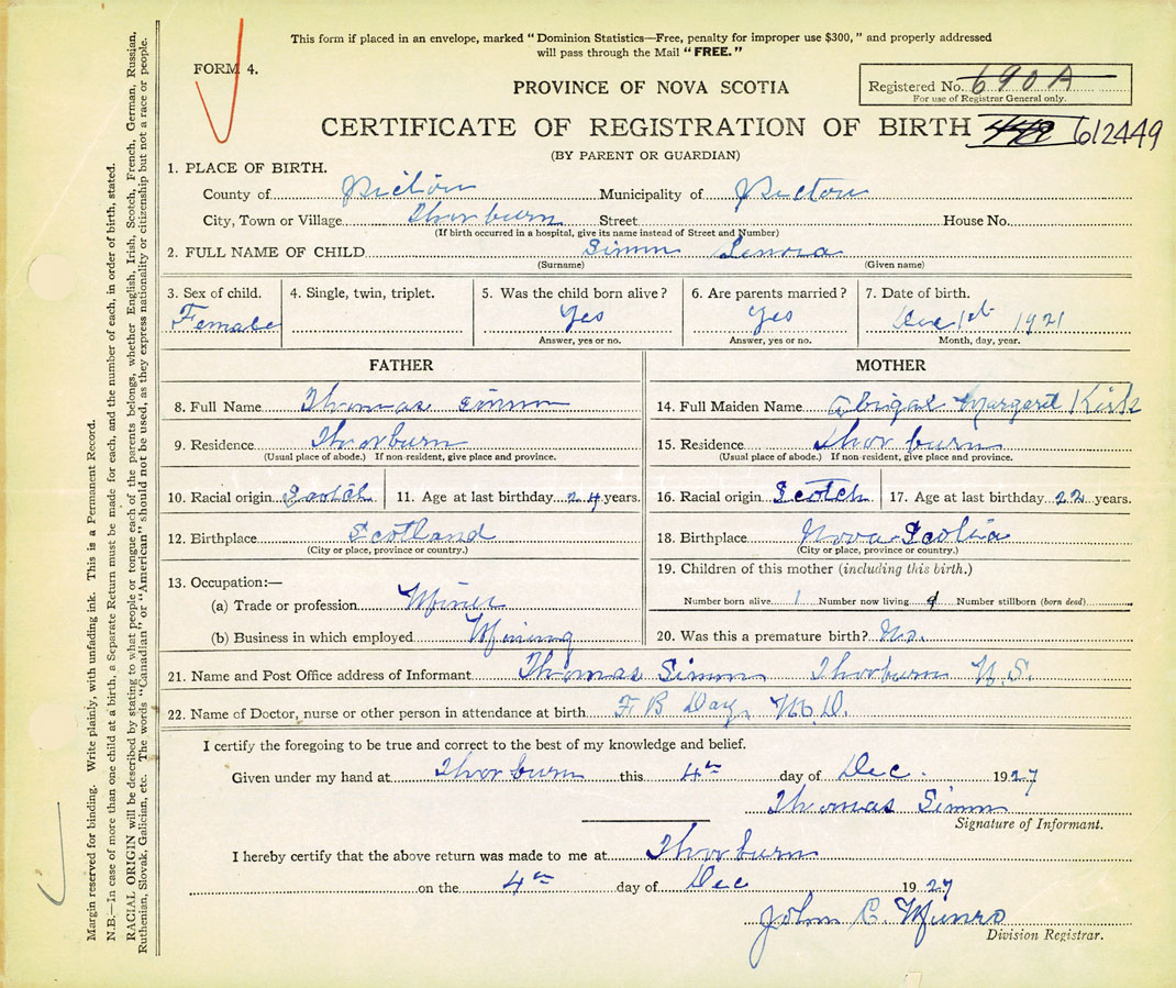 Nova Scotia Archives — https://archives.novascotia.ca/vital-statistics/birth/?ID=406885
