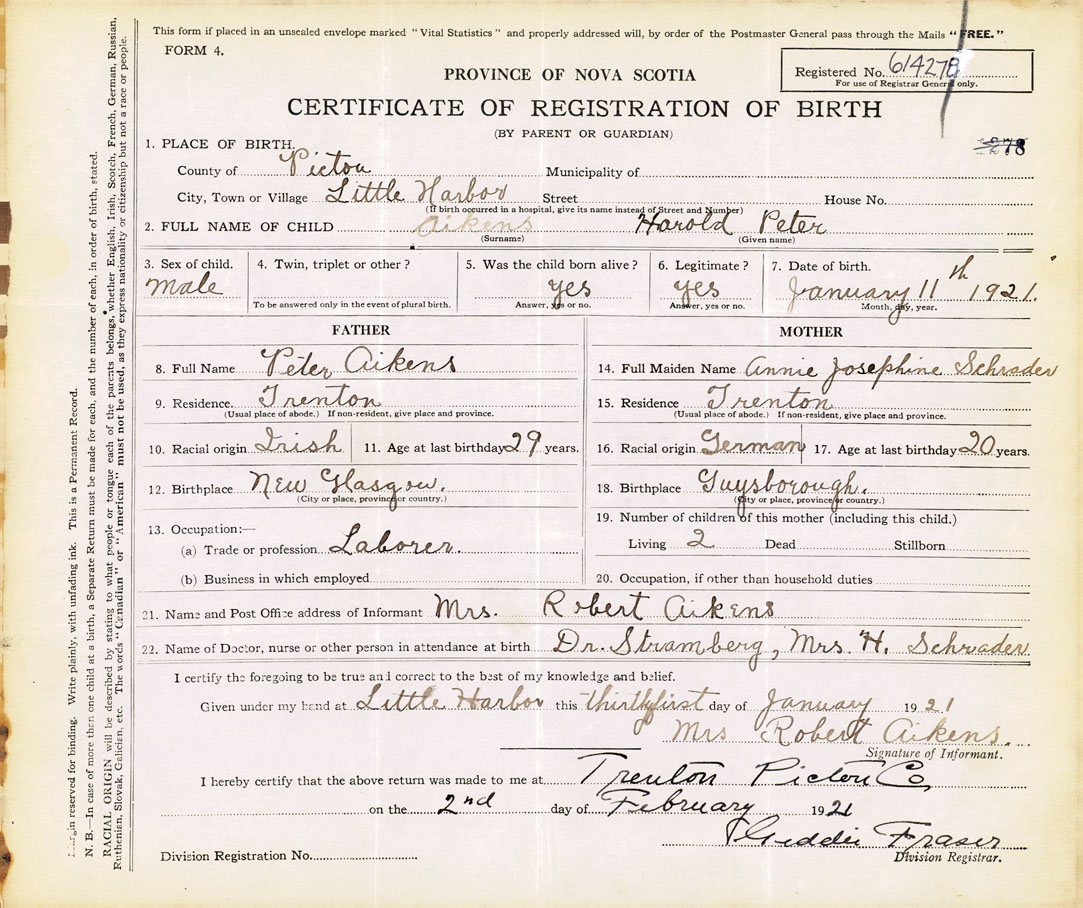 Nova Scotia Archives — https://archives.novascotia.ca/vital-statistics/birth/?ID=406948