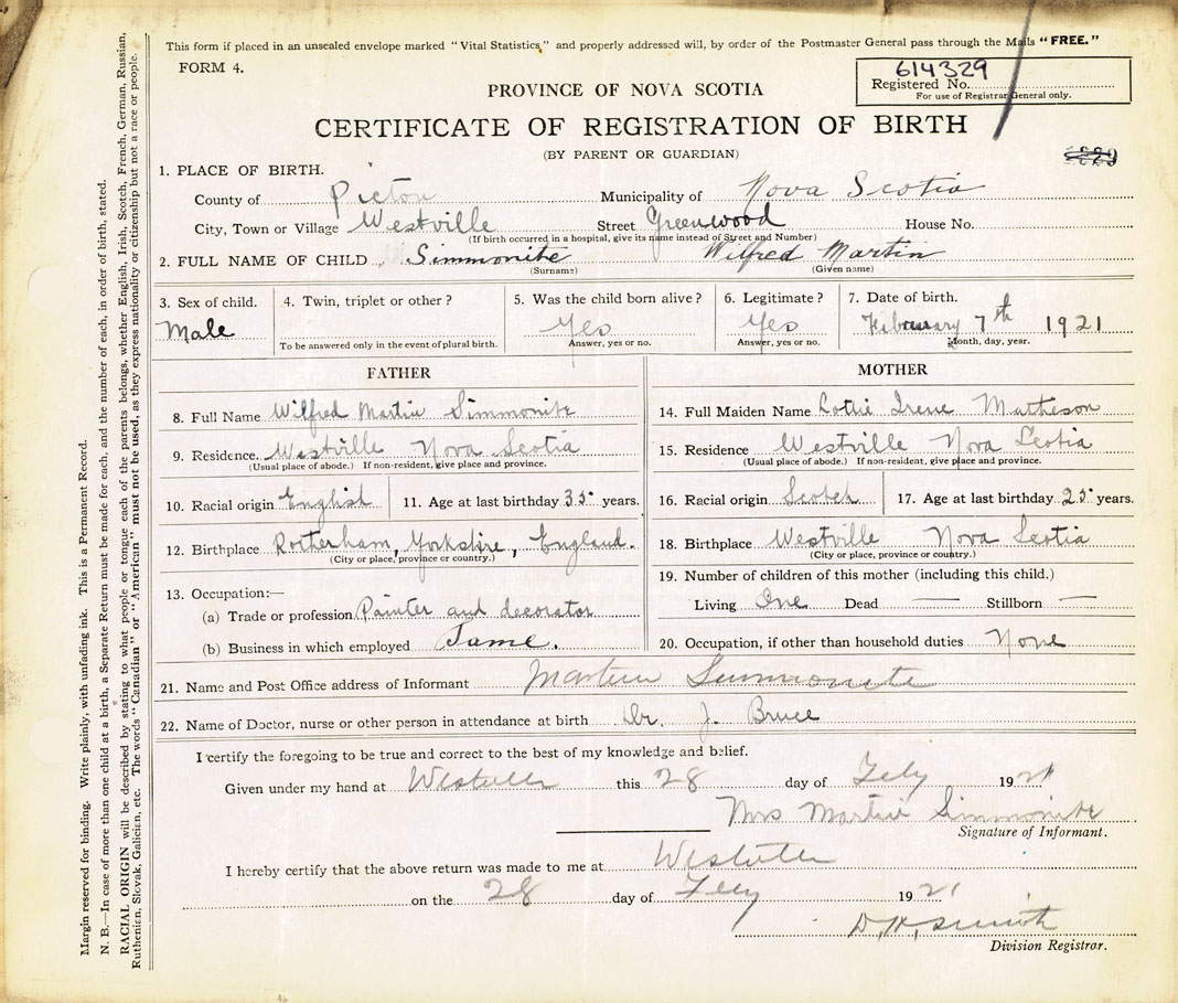 18. Birthplace Westville Nova Scotia