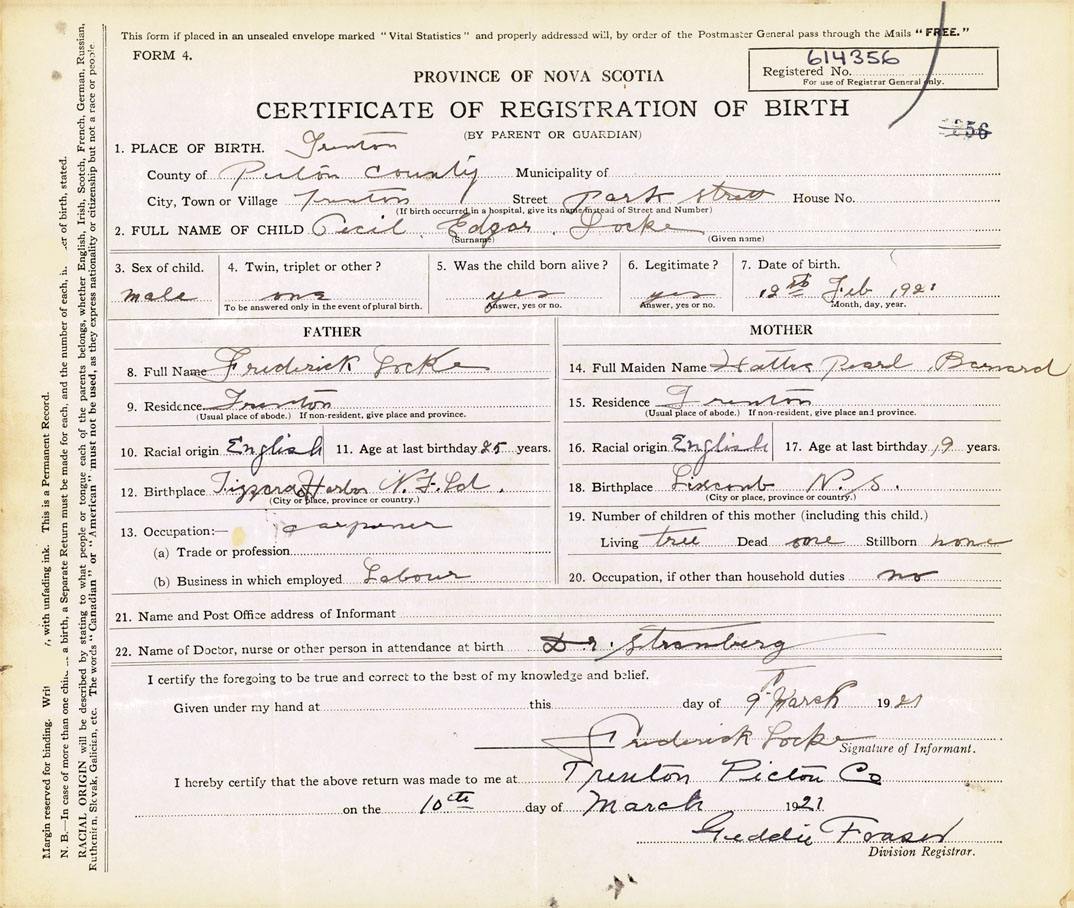 Nova Scotia Archives — https://archives.novascotia.ca/vital-statistics/birth/?ID=407026