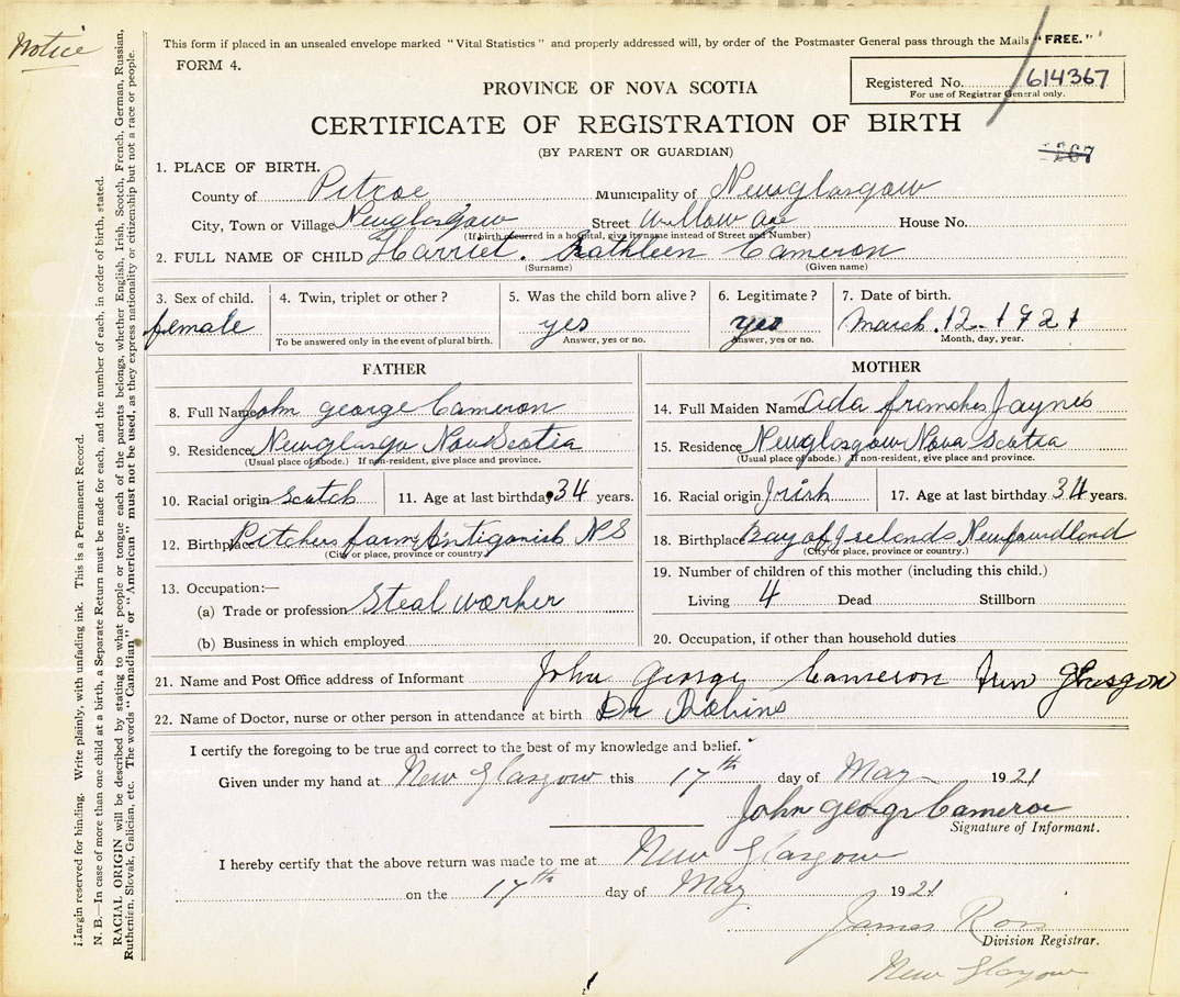 Nova Scotia Archives — https://archives.novascotia.ca/vital-statistics/birth/?ID=407037