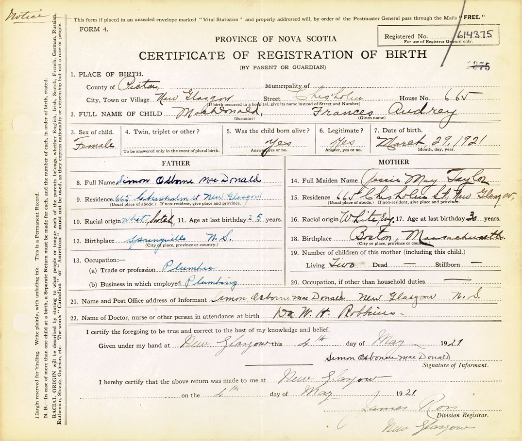 Nova Scotia Archives — https://archives.novascotia.ca/vital-statistics/birth/?ID=407045