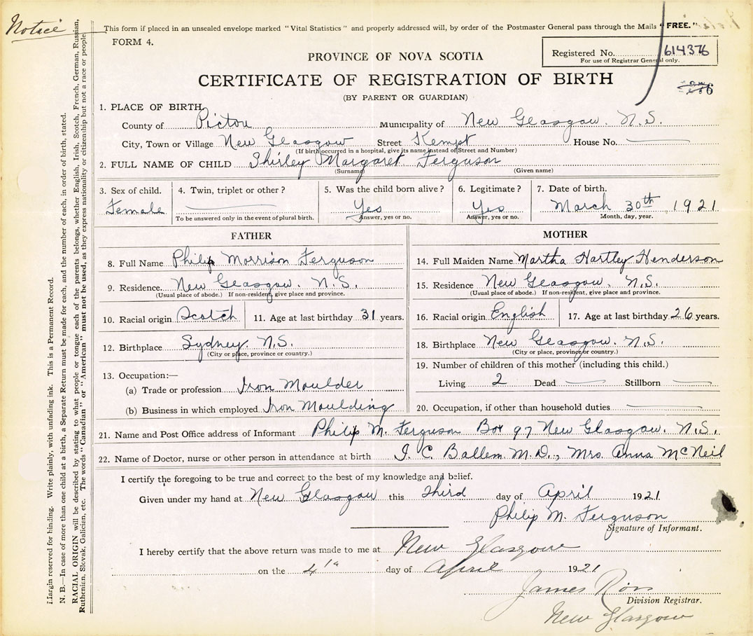 Nova Scotia Archives — https://archives.novascotia.ca/vital-statistics/birth/?ID=407046