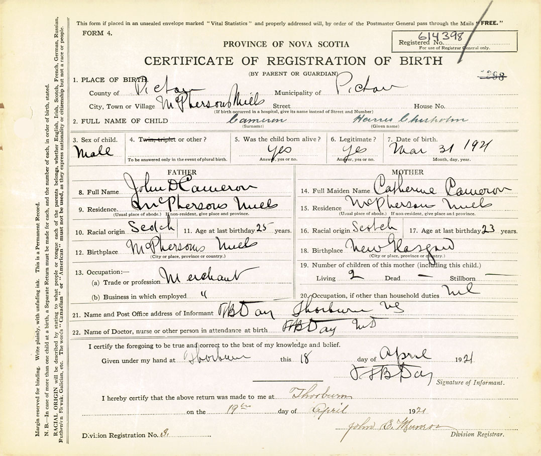 Nova Scotia Archives — https://archives.novascotia.ca/vital-statistics/birth/?ID=407068