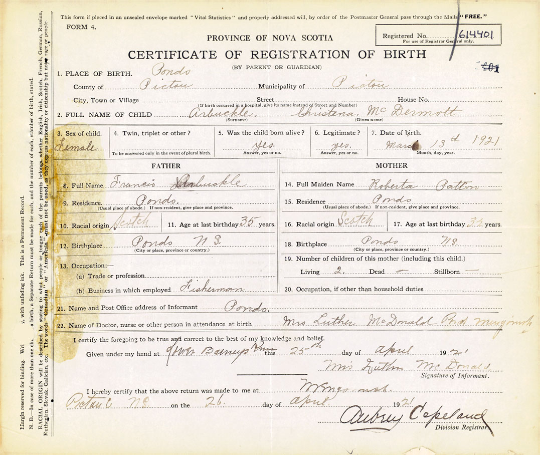 Nova Scotia Archives — https://archives.novascotia.ca/vital-statistics/birth/?ID=407071